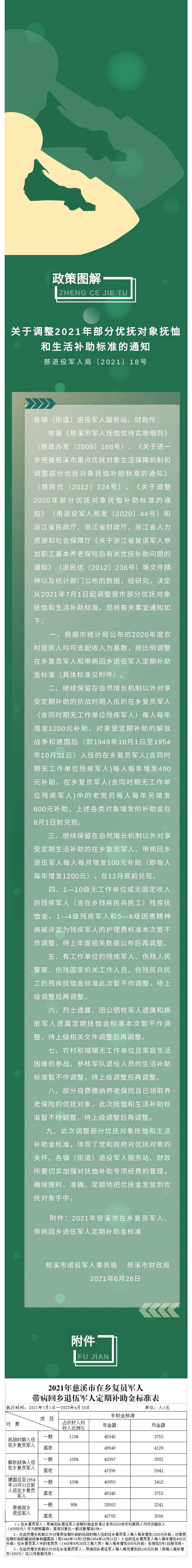 《关于调整2021年部分优抚对象抚恤和生活补助标准的通知》政策图解